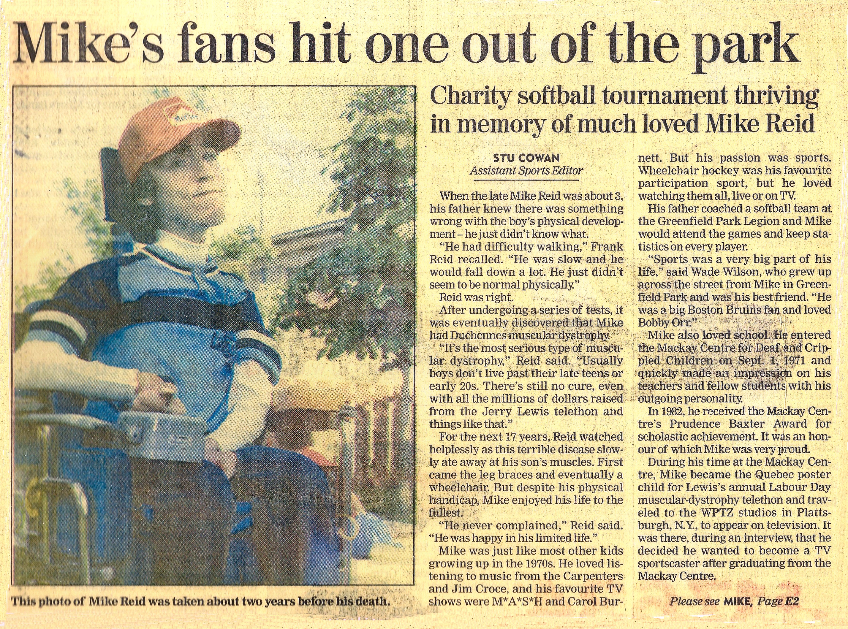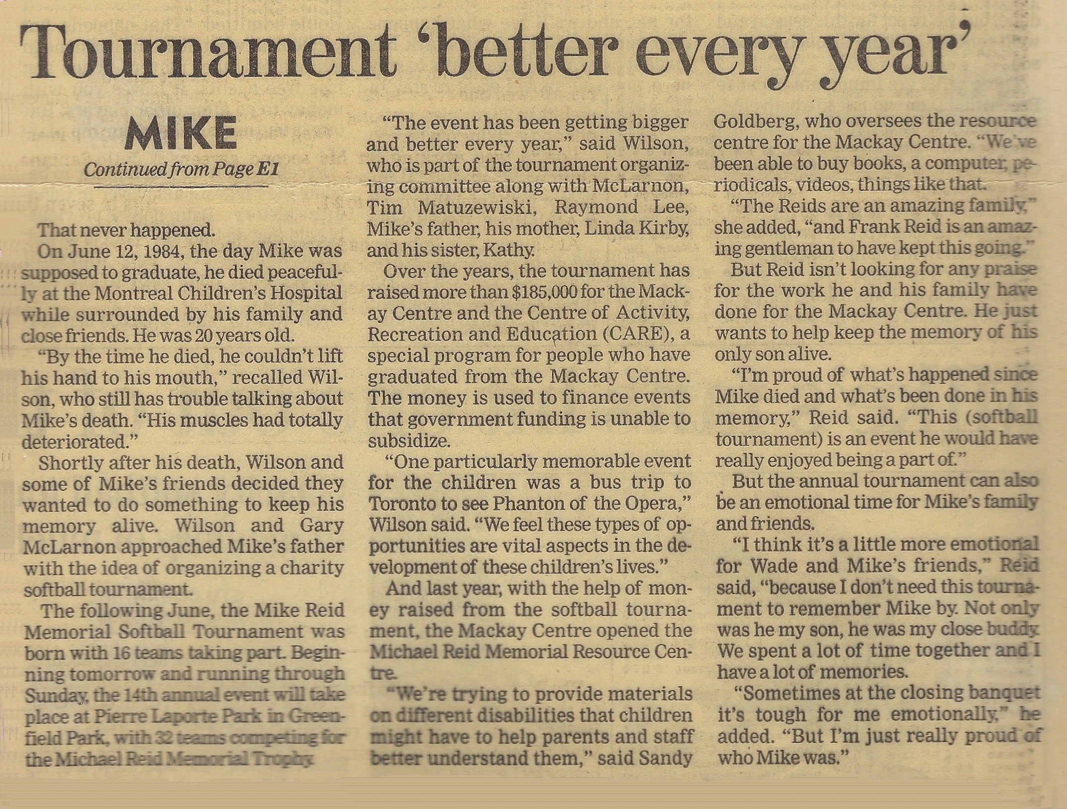 Winners of Division A were the Dirty Dozen over the Fresh One Flash Mullins. The East Greenfield Team won the division B over the team from Provigo in St-Lambert. Thirty-two teams played in the tournament and $19,000 was raised for Montreal's MacKay Centre.